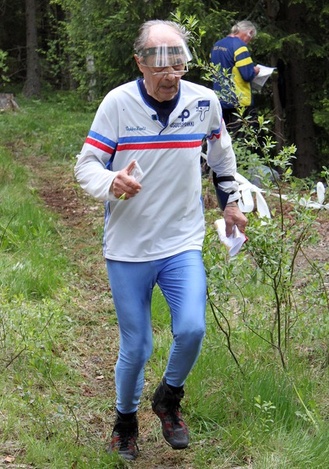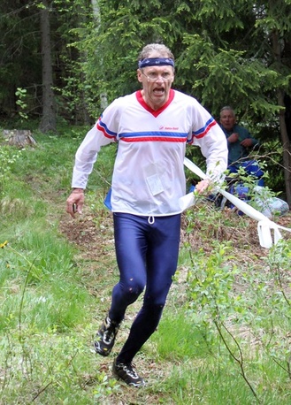 ![]() Raili Vienola D70 4. | ![]() Miesten pääsarjan voittaja Angelniemen Ankkurien Vesa Mäkinen loppusuoralla. |