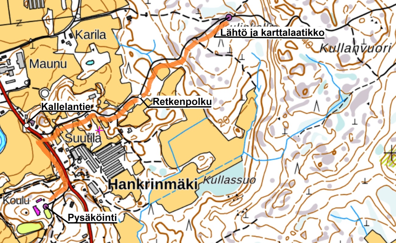 Vakka-Omatoimirastit Kullanvuoren kartalla Kalannin Hallussa ti 8.6.-su 13.6. Metsässä rastiliput koodinumeroin, ei leimasimia. (liput maastossa koko ilmoitetun ajan) Paikka: Kullanvuoren kartalla, ajo Kallelantietä Uki-Laitila-tieltä Kallelan risteyksestä. Pysäköinti: HaKaVa-kylätalon piha-alueella (entinen Hallun koulu), osoite Maxinpolku 15, 23600 Uusikaupunki. Maxinpolun risteyksessä rastilippu. Lähtöpaikka: Retkenpolun varrella, osoite Retkenpolku 80, 23600 Uusikaupunki. Lähdön/karttalaatikon sijainti näkyy liitteen kartassa. Siirtyminen pysäköinnistä lähtöön ensin n. 200 m Kallelantietä, josta Retkenpolkua n. 800 m. Retkenpolulla viitoitus (harvakseltaan) keltaisella kuitunauhalla ja karttalaatikon luona pari rastilippua. Radat: 2,2 km, 3,4 km ja 5,3 km. Kartta Kullanvuori, uusimmat päivitykset 2020, 1:10000 ja 1:7500/2.5 m. Valmiiksi tulostettuja karttoja on lähtöpaikalla postilaatikossa. Kartta ei ole muovikotelossa. Ohjeet turvaväleistä ja käsihygieniasta on hyvä muistaa myös omatoimisuunnistuksessa. Jos et tunne oloasi terveeksi, jää kotiin. Karttamaksun 5€ voi maksaa Vakka-Rastin tilille FI96 5491 0220 0100 16. Osallistuminen on maksuton Vakka-Rastin jäsenille sekä kaikille alle 20-v. (jäsenetu VaRa-jäsenille). Voit myös maksaa sähköisesti SmartumPay -sovelluksella tai jättää liikuntasetelin lähtöpaikan karttalaatikkoon.
