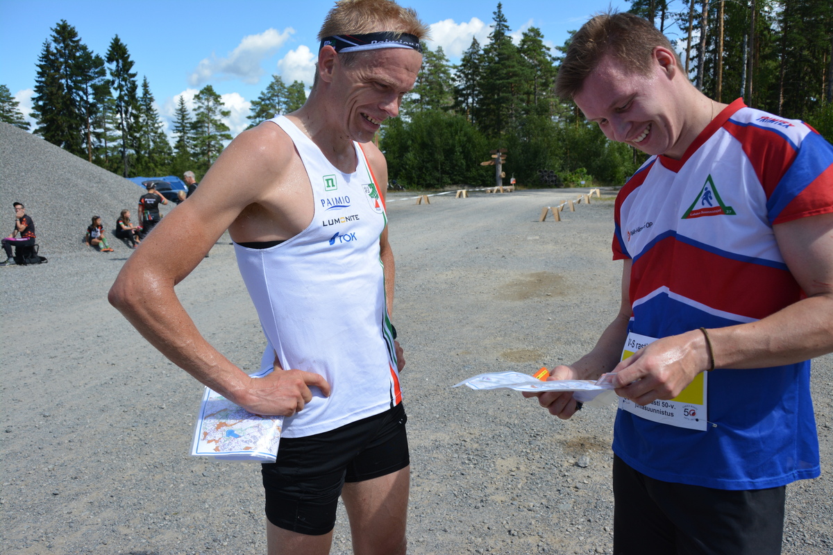 Varsinais-Suomen Rastipäivien avaus (30.7.) suunnistettiin mainiossa säässä Uudenkaupungin Lokalahdella. Puitteet Vakka-Rastin 50-vuotisjuhlakilpailulle olivat upeat. Sora-alueen monttuun Muntilan Tuulipuiston jyhkeiden myllyjen lähelle olisi mahtunut enemmänkin osanottajia - ja myös yleisöä. Varsinais-Suomen Rastipäivien voitot ja muut palkintosijat ratkeavat kahden päivän yhteistuloksin. Lauantaina suunnistettiin keskimatkat, jotka pääosalle porukasta olivat varsin lyhyitä ja nopeita juoksuja. Polkujakin lenkeille kallioisilla seuduilla tuli tietysti eteen jonkin verran. Sunnuntaina suunnistetaan samassa maastossa pitkät matkat. Päivien tulospaketti toisaalla kisasivuilla. Akseli Ruohola oli sekunnintarkka mies Miesten pääsarjan nopein oli MS Parman Akseli Ruohola. Ihmeellisesti hän juoksi sekunnilleen saman ajan (30.14) kuin viime heinäkuussa voittaessaan Muntilassa Varsinais-Suomen Am-keskimatkan. -Ei tullut isompia virheitä, suoraviivaisesti vain suunnistin. Suoritukseen tuli turhaa hätäilyä ja säntäilyä, kun yritti mennä kovaa. -Aika paljonhan nopeassa maastossa oli tiheääkin metsää. Oli haastetta edetä siellä sujuvasti. Hauskaahan täällä taas oli, kiteytti noin kolmella minuuttilla H21:n voittanut Akseli, joka ei kilpaile toista osaa pyhänä. -Oli mielestäni valtavan hieno rata. Näytti, että rastiväleillä ei ole mitään, mutta olihan siellä piilossa haasteita, jutteli kolmanneksi sijoittunut PR:n Pasi Ikonen, ex-maailmanmestari, joka jäi sekunnin TuMen Jussi Sunasta. -Rastivälillä 5-6 tein idioottimaisen virheen ja kurkistin väärään mäkeen. Muuten juoksu kulki hyvin, vaikka suunnistin viikolla paljon maajoukkueen mukana Viron leirillä, tarinoi Pasi. Pyrinnön Saila Kinni koko ajan kärjessä Naisten pääsarjassa TP:n Saila Kinni oli kärjessä jokaisella 11 rastilla. Rastiväliaikojen kärkipaikkoja hän kuittasi kuusi kappaletta. Kakkoseksi sijoittunut MS Parman Elsa Ankelo jäi 51 sekuntia vajaalla viidellä kilometrillä. -Pieniä virheitä tuli, ei ollut optimaalinen suoritus. Viime vuoden Am-kisoista oli muistikuvia, että vauhtia täällä sai pitää. Mutta silti radalla ei päässyt helpolla, summasi päivän kakkonen Elsa. Varsinais-Suomen Rastipäivillä on pääsarjoissa odottamassa rahapalkintoja valmennusstipendien muodossa. Muissakin sarjoissa kärkipään suunnistajat palkitaan, tavalla tai toisella. Suunnistusjuhlaa ja Suvipäiviä Kansallisen kilpailun ja VaRa-juhlavuoden suunnistajat Muntilassa olivat osa Lokalahden kaupunginosan lauantaisia kesätapahtumia. Lokalahden Suvipäivät vietettiin sattumalta samaan aikaan keskustan alueella. Taajamassa oli rastilippukylttien lisäksi opasteita IKE-hölkkään ja lasten juoksuun keskustan urheilukentältä. IKE tarkoittaa tietysti jokin aika sitten edesmennyttä suurta urheilumiestä ja valtiopäiväkonkaria Ilkka Kanervaa. Hän olisi isosti tykännyt liikunnallisesta vilskeestä kotipaikkakunnalla ! Veijo V.