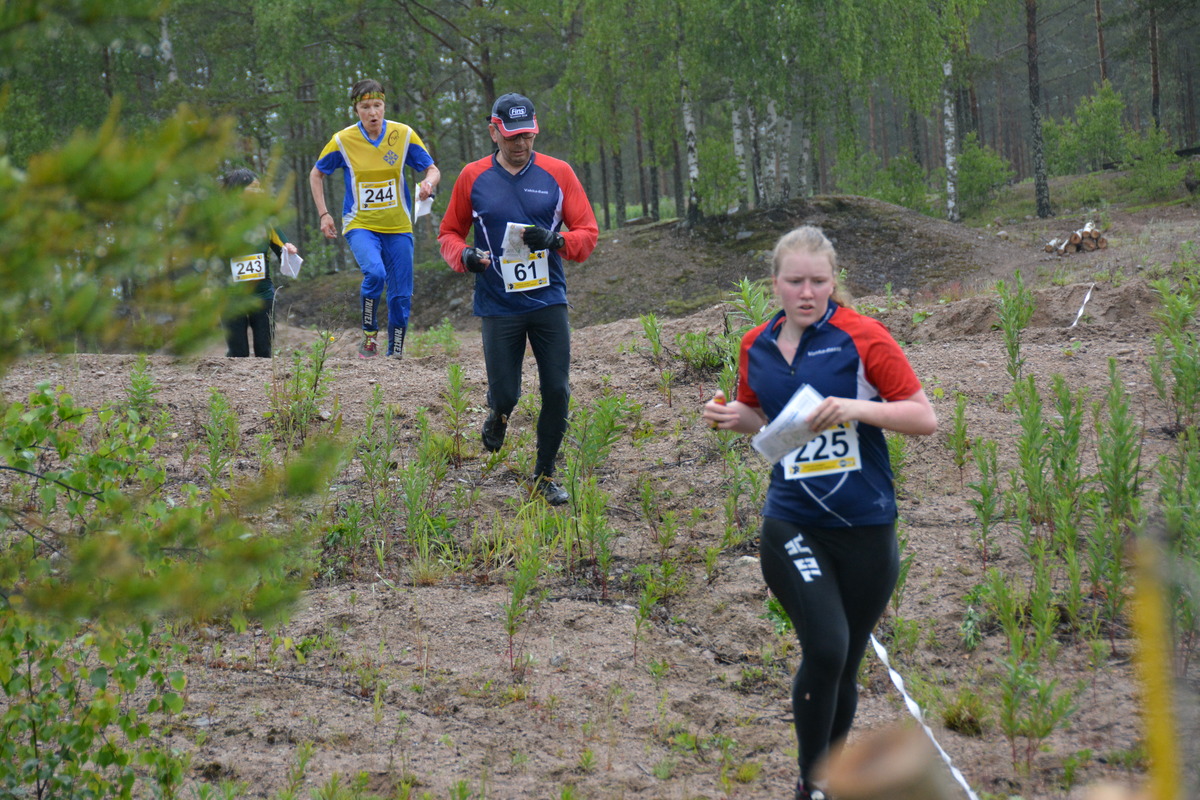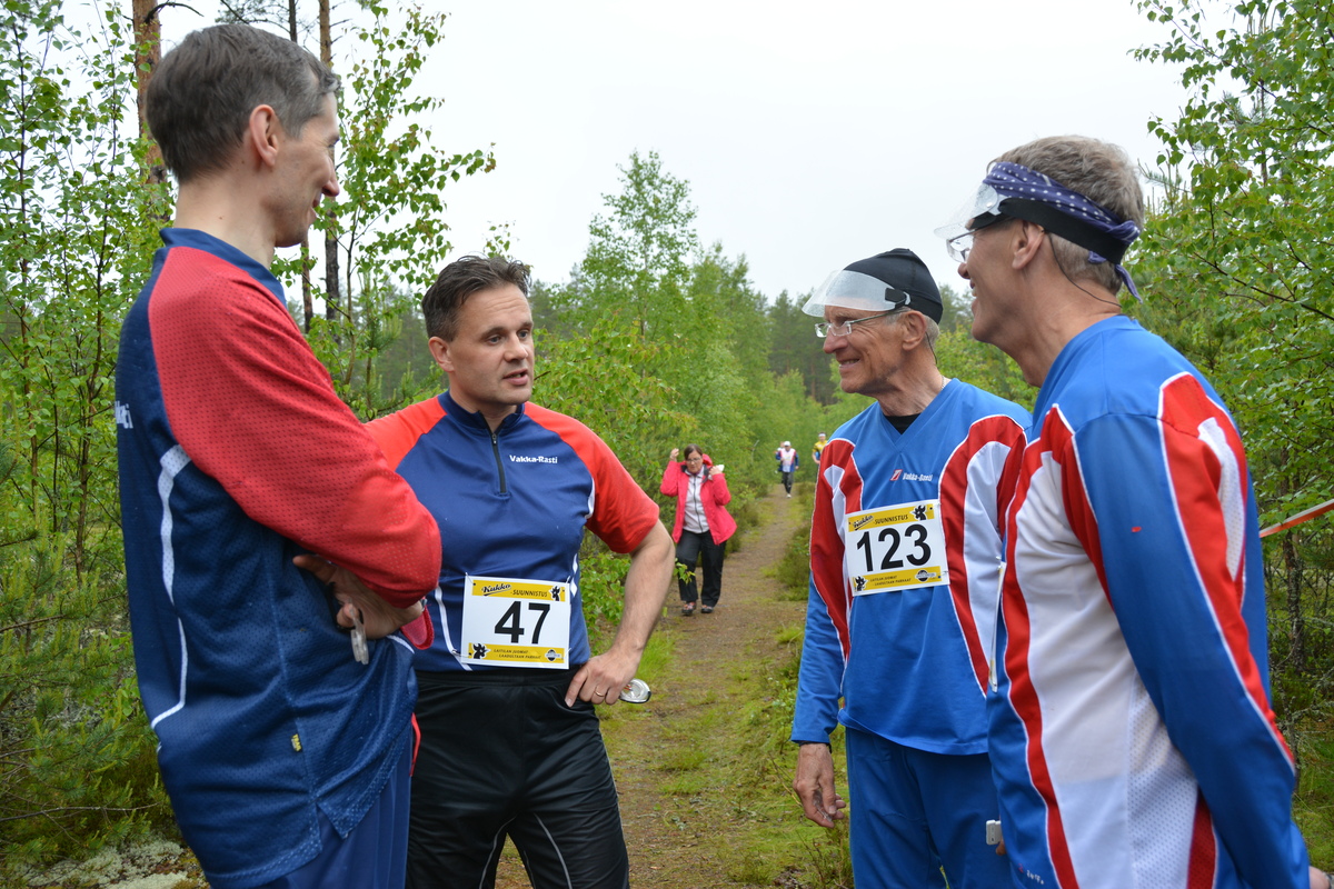 Laitilan kansallinen Kukkosuunnistus (18.6.) veti Krouvinummen metsiin lähes 350 suunnistajaa. Koko torstaipäivän kestänyt sade vaikutti lähinnä kuntorastien tavallista pienempään osanottajien määrään. Kukkosuunnistus on juhannusviikon perinteistä ohjelmaa - ilman sitä ei keskikesän juhla oikeastaan ala kunnolla! Jyske on vuosikymmenestä toiseen säilyttänyt tapahtuman rennon hengen, jota nykyisin vielä täydentävät tuoretorilla myynnissä olevat maalaisten einekset. Erityisesti nuorille kilpailijoille tärkeitä ovat palkintoina jaettavat kukkopillit. Niitä kannattaa tavoitella, ja mikäpäs se vanhemmille korville onkaan kivempaa kuultavaa kuin pilleillä puhallettu konsertti vaikka autossa kotimatkalla. Vakkarastilaiset saavuttivat kansallisesta kilpailusta mukavia tuloksia. Ne ja tarkat rastiväliajat on julkaistu LaJy:n kisasivuilla netissä. Sarjavoittoja ja palkintosijoituksia siis saavutettiin. Kukkosuunnistuksen täydelliset tulokset ja myös Jamon valokuvia: http://laitilanjyske.sporttisaitti.com/suunnistus/