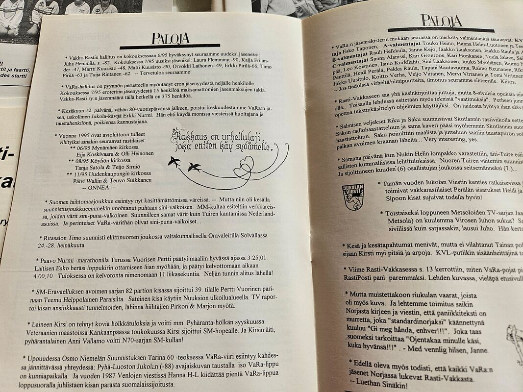 Vakka-Rasti on tiedotanut jäsenistöään muutaman kerran vuodessa ilmestyneellä Rasti-Vakkasella. Lehteä toimittivat aluksi Seppo Sinkkilä (1972-75) ja Raimo Reunanen (1975-78) Vuonna 1977 seuran tiedoitussihteeriksi valittiin Veijo Viitanen ja hän toimitti lehteä 1979 alkaen. Sähköinen viestintä taisi tämänkin paperilehden lopettaa. Olen skannaillut parikymmentä Rasti-Vakkasta näille sivuille kaikkille seuran historiasta kiinnotuneille. Jos sinulla on lisää lehtiä niin ota yhteyttä, voin niitä tänne sivustolle skannailla. Kari Jalava