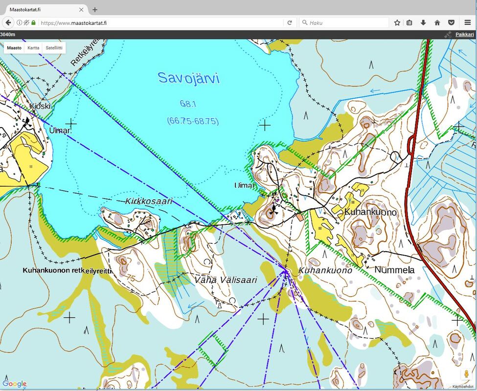 Maastokartat –sivusto toiminnee maastossa myös mobiilisti, jos yhteydet toimivat. Helppo vaihtaa maastokartan ja sateliittinäkymän välillä.