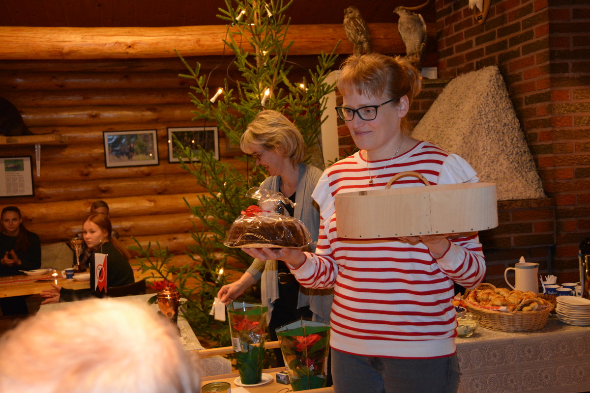 Vakka-Rastin suunnistajat juhlistivat pikkujoulua palkintojen parissa, perinteisessä yhteistilaisuudessa Kalannissa (2.12.). Erämiesten maja täyttyi rastilaisista, joilla oli paljon muisteltavaa ja kerrattavaa kauden tapahtumissa. Hyvän pohjan kauden muisteluksille antoi Heli ja Kari Jalavan kokoama video. Paljonpa sitä ehtiikin suunnistusseurassa tapahtua vuoden aikana. Oli rasteilla ihanan kuuma ja kuiva kesä - Sannaisissa tosin satoi suloisesti. Tilaisuudessa kuultiin musiikkiesityksiä, joista huolehtivat jo oman orkesterin koonneet Matilda Kauha sekä Senni, Heikki ja Riitta Hirvonen. Soittajien kokoonpano oli sellainen, että Hirvosen vanhemmat urkurimiehet voitiin jättää reserviin. Eipä viitsitty majalle koota heidän pääsoittimiaan ihan yhden illan keikkaa varten. Joulutilaisuudessa oli lämmittävää tarjoilua, josta paikalla huolehtivat Päivi Miettinen ja Pirjo Nousiainen. Tarjoilun antiin oli myös kotitonttu Inkeri Penttilällä hyvä osuutensa. Ja arvonnan palkintoja oli leiponut moni muukin mestari !
