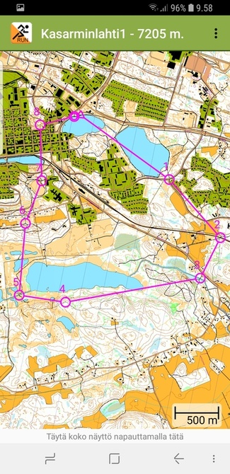 Lataa ilmainen GPS Orienteering Run älypuhelimeesi Google Play -kaupasta. Alla lyhyeet ohjeet ja esimerkkikartta ja -rata.