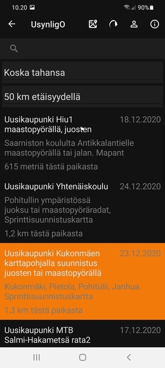 Vakka-Suomen alueelle on tehty muutamia UsynligO -suunnistusratoja. Voita ladata älypuhelimeesi (Andoid tai Apple) sovelluksen, jonka avulla suunnistat kävellen, juosten tai maastopyörällä rastipisteitä ja saat automaattisesti väliajat ja loppuajan.