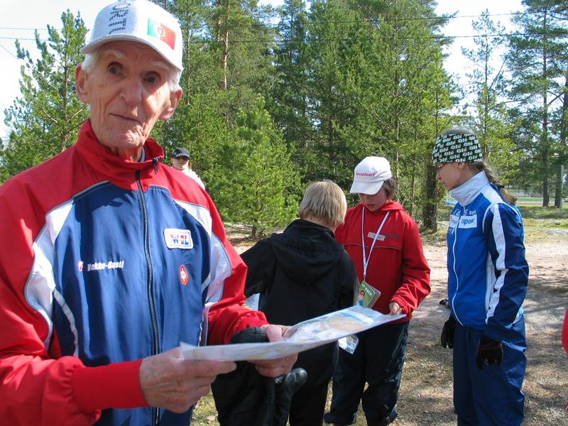 Erkki nuorten parissa U:gin urheilukentän lähellä.