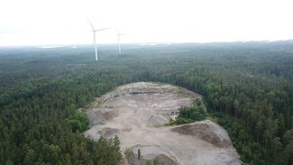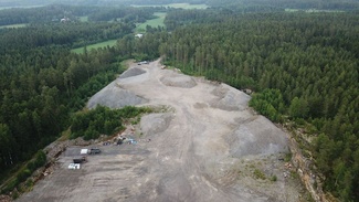 Kilpailukeskus ja autojen pysäköinti ovat kovalla maalla louhosalueella.