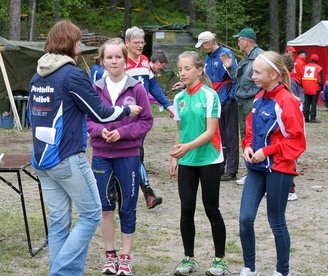 ![]() Raili Vienola D70 4. | ![]() Miesten pääsarjan voittaja Angelniemen Ankkurien Vesa Mäkinen loppusuoralla. |
