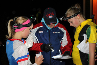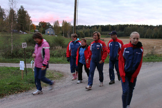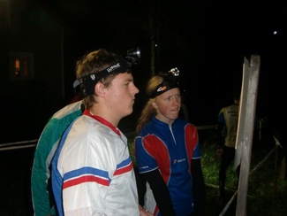 Osa varalaisista yhdessä lähtöpaikkaan tutustumassa |  Enni tutkii mallikarttaa lähtökarsinassa |