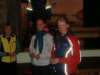 Enni maalissa Helin ja SuSi:n Henna Yliluikin kanssa. |  D14 palkintojenjako, Enni saa kultamitalin, hopeaa saa Venla Kinnala (vas.) |