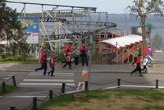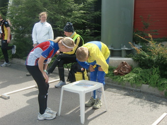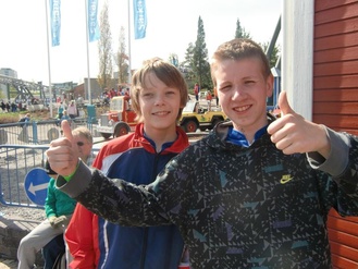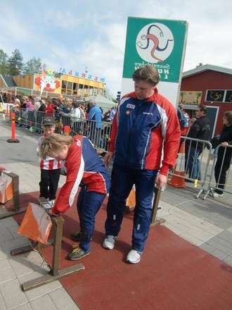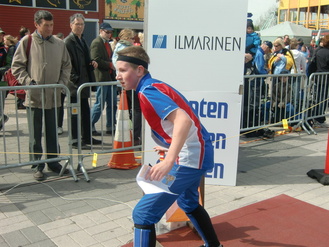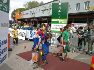 ![]() Eero ja Roope lähtöpaikalla | ![]() Rasmus maalissa |