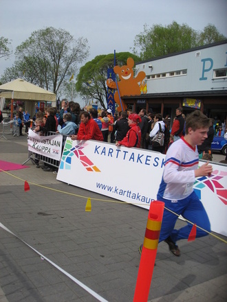 ![]() Kartta piti jättää seurapussiin | ![]() Mikko maalisuoralla. |