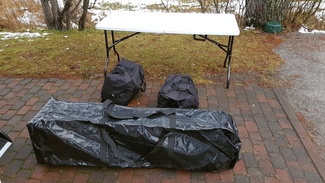 Teltta tarvikkeineen on kolmessa kassissa varastolla.