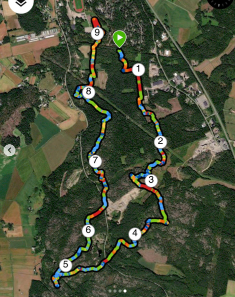 Rehellisesti sanottuna metsästä ei ole paljoakaan selkeitä muistikuvia. Tossua toisen eteen vaan, suuntaan kartasta ja kohti seuraavaa rastia. En ole vielä saanut kisan jälkeen karttaa käsiini, enkä ehtinyt katsoa Venlojen lähetystä Areenasta. Harmitti, että jännitys ja huono syöminen veivät niin paljon energiaa, että en jaksanut juosta lainkaan niin paljoa ja kovaa kuin olin ajatellut. Toisaalta taas metsän märkyys ei haitannut ollenkaan, pukeutuminen osui nappiin. Lämmin, pitkähihainen kerrasto tiimipaidan alla oli omalle lämmönsäätelylle hyvä ratkaisu. Muutamaa rastia etsittiin metsässä isolla porukalla pitkään ja huudeltiin koodeja metsässä. Monta kertaa piti valita, että pysähtyykö itse sijoittamaan itsensä kunnolla kartalle, vai lähteekö vaan sen porukan ja polun mukaan, joka näyttää lähtevän oikeaan suuntaan. Tasaisia kallioita en matkan varrelta juuri muista.
