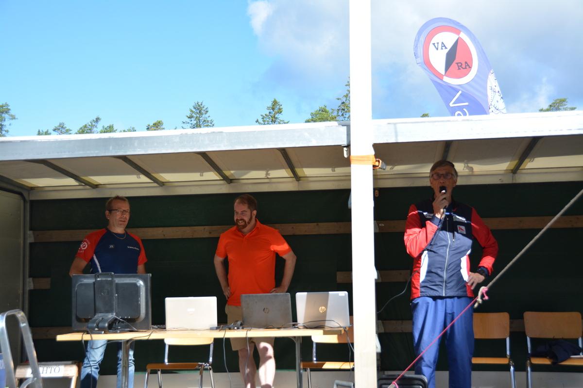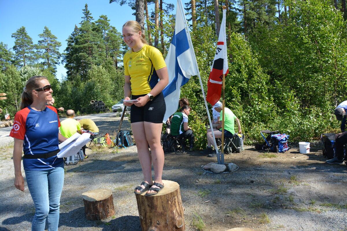 Kilpailunjohtaja Helena Koistinen jakoi yhteisessä tilaisuudessa nuorten sarjojen palkinnot. Nykyisen käytännön mukaan ikäsarjojen nopeimmat saivat itse hakea palkintonsa infosta.