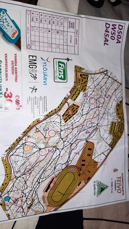 -Aluksi oli vaikeuksia Kukkosuunnistuksessa tulleen silmävamman takia, mutta pääsin sentään juoksemaan (kiitos myös omalääkäri-Riitta). Ehkä siinä hermostuksissa unohdin kartan mittakaavan (1:7500) ja painelin alussa rasteista ohi.