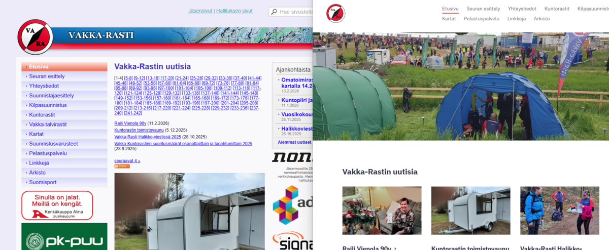 Vakka-Rastin kotisivut on siirretty uuteen ympäristöön. Sivuston sisältö ja rakenne ovat pääosin kopioitu vanhasta ympäristöstä. Vanhaa ympäristöä palvelun tarjoaja (Vitec Avoine Oy - Yhdistysavain) ei ollut enää muutaamaan vuoteen kehittänyt. Uusi ympäristö toimii paremmin mm. mobiilikäytössä.