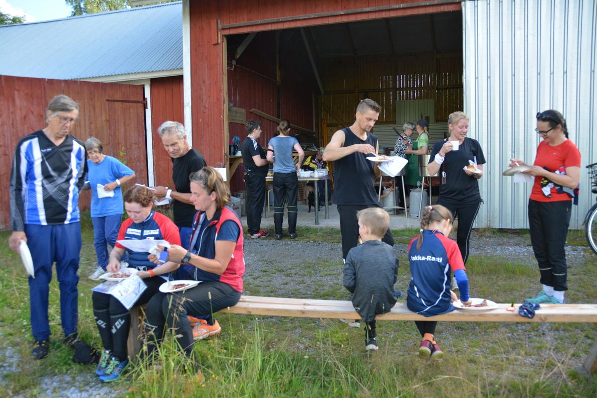 Reippaiden sadekuurojen välissä helteisestä illasta tuli ihan happening, kun keskuspaikalla Raulion Pienviljelijäyhdistys myi puffetistaan mm. muurinpohjalettuja. Ja kauppa kävi suunnistamisten jälkeen.