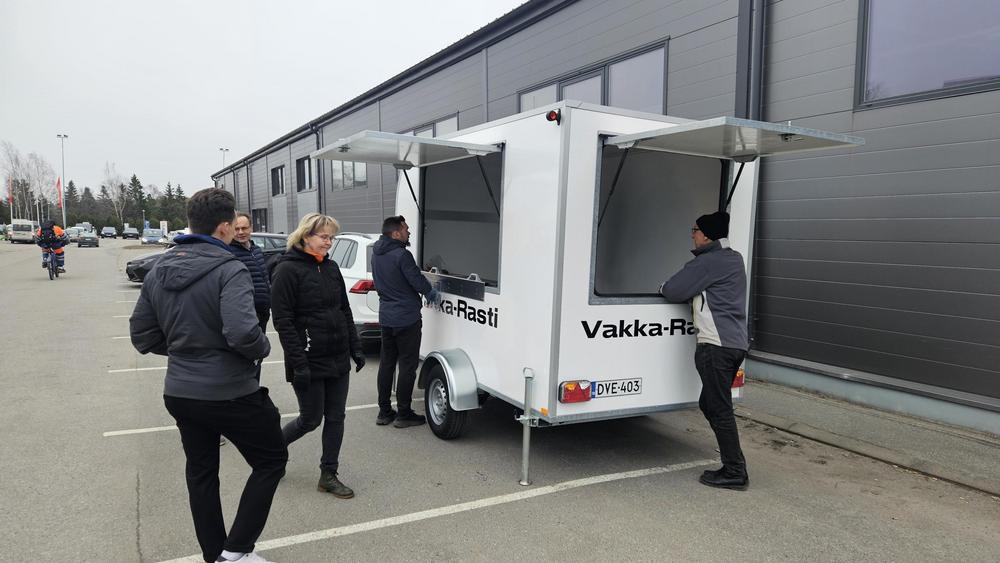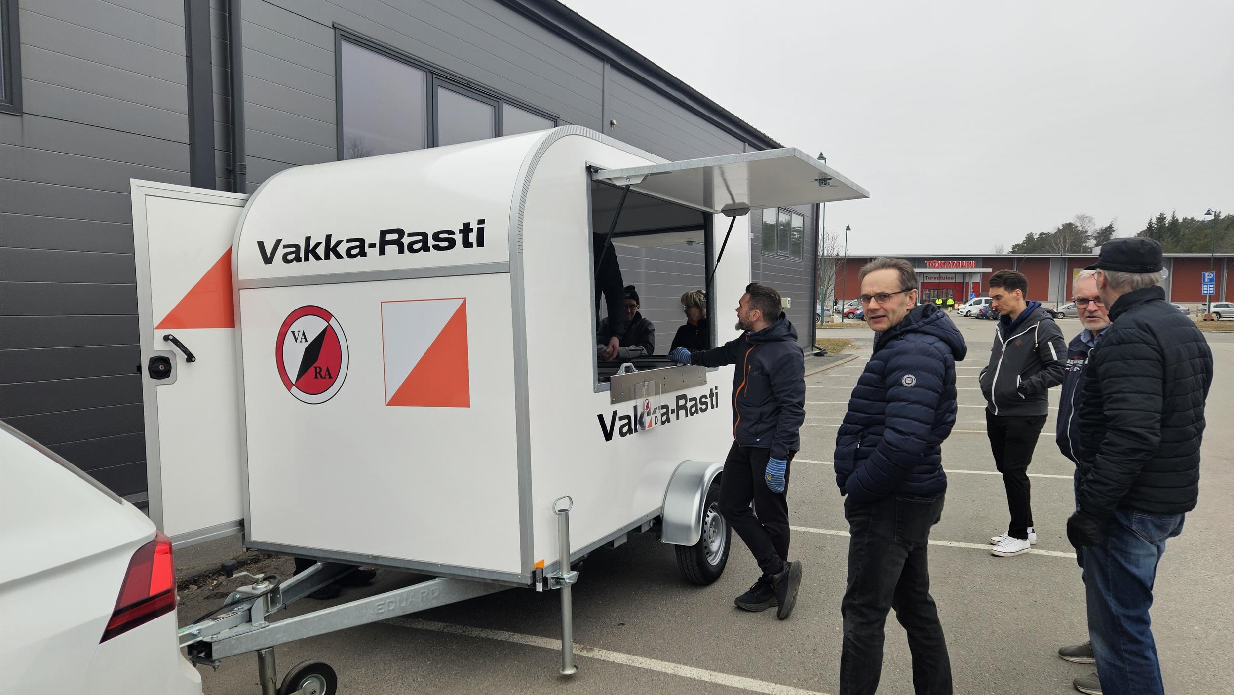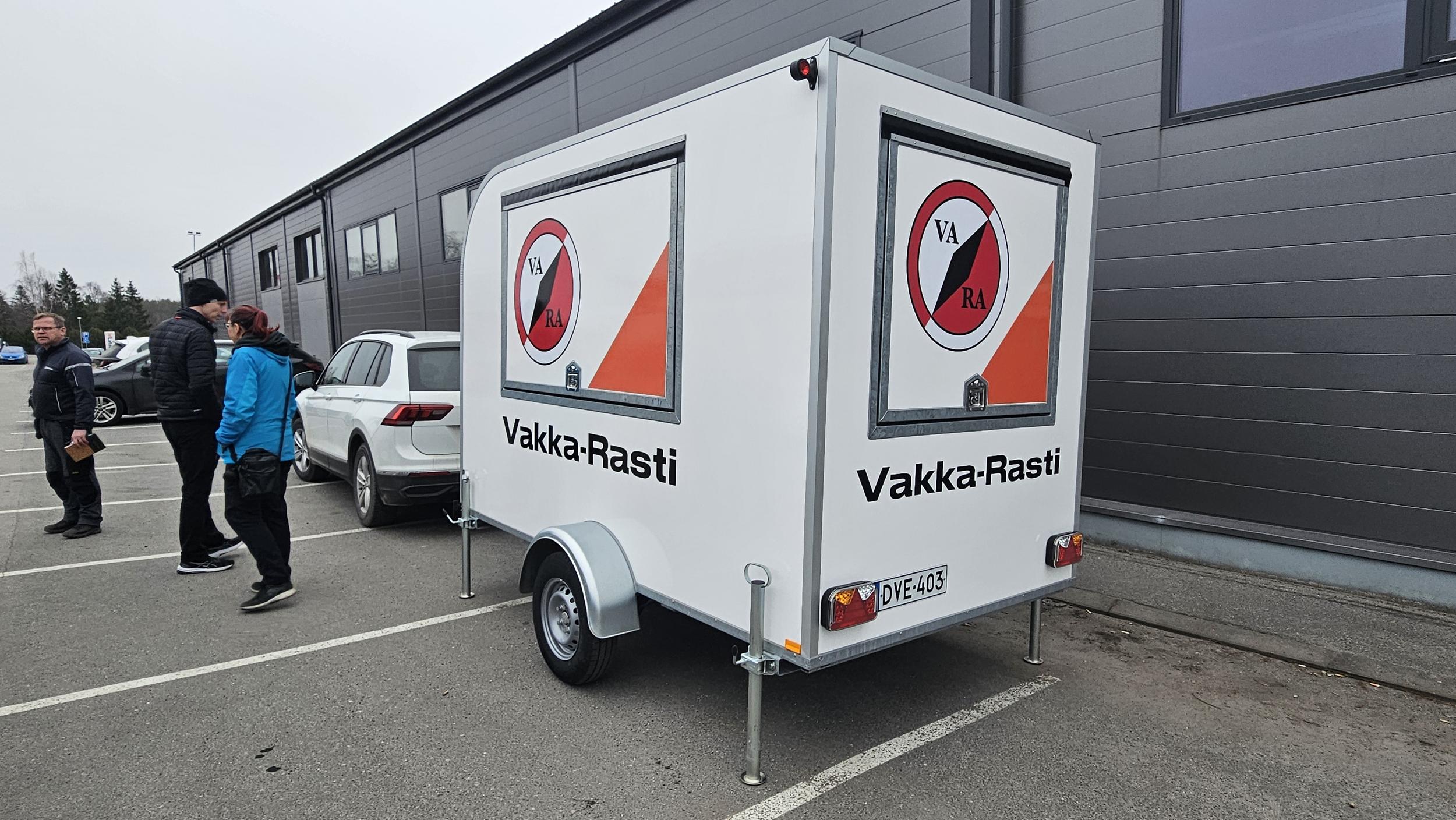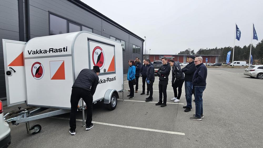 Esillä oli myös Vakka-Rastin hieno uusi kuntorastikärry. Tarkoitus on että kärryissä kulkee mukana kaikki järjestelyissä tarvittava aineisto. Varsinaista sijoituspaikkaa ei ole vielä määritelty, toistaiseksi on hyvä sopia kärryn (avainten)vaihdosta suoraan edellisen järjestäjäryhmän kanssa. Edelleen voi tapahtuman järjestää edellisten vuosien tapaan. Kärryissä ei ole (toistaiseksi) virran ulostuloa, joten edelleen tietokone, puhelin ja varavirtalähde on ladattava täyteen ennen tapahtumaa.