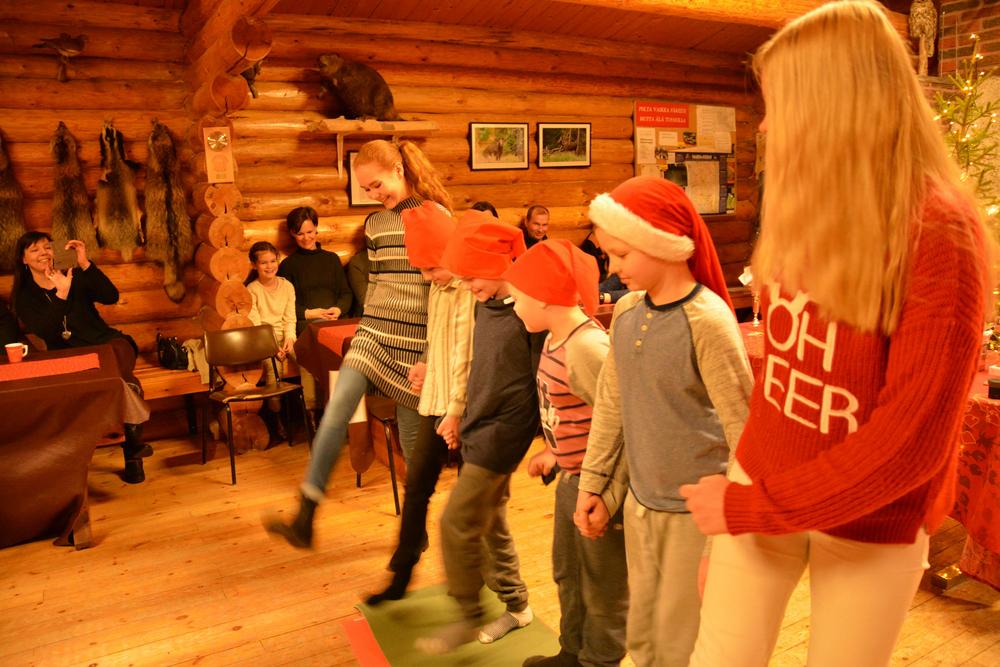 Päivän hauskimmasta hetkestä huolehtivat suunnistuskerhon tontut Henri Lehikoinen, Aatu Nikusaari, Teo Nikusaari ja Oliver Suopajärvi, joiden ohjelman vauhdista vastasivat koreografit, kerho-ohjaajat Julia Suopajärvi ja Peppi Vuorela. Myös tontturuno herätti hilpeyttä - kyllä kannattaa suunnistaa!