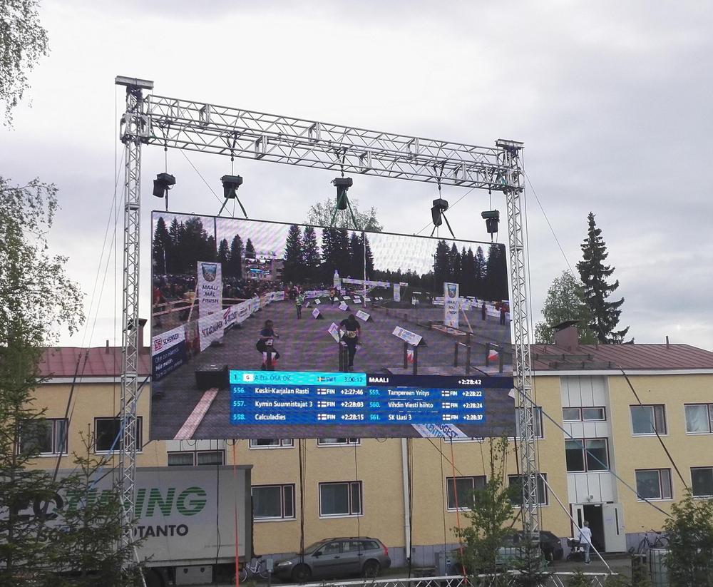 Jukolan viestin lähtöä oli tänä vuonnakin paikan päällä seuraamassa presidentti puolisoineen, ja yleisöä oli niin paljon, ettei kovin lähelle oikein edes päässyt katsomaan. Mutta alueelle oli järjestetty kahdelle eri kentälle valtavat screenit, joista kisan kulkua sai seurattua.