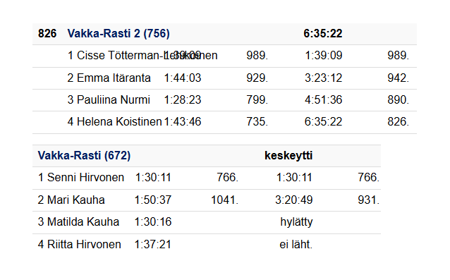 Venlat suoriutuivat maastosta hyvin, vain harmillinen väärä viimeisen rastin leimaus aiheutti muuten hyvin juosseen toisen joukkueen hylkäämisen. Tällaista sattuu, uudestaan ensi vuonna kokeilemaan.