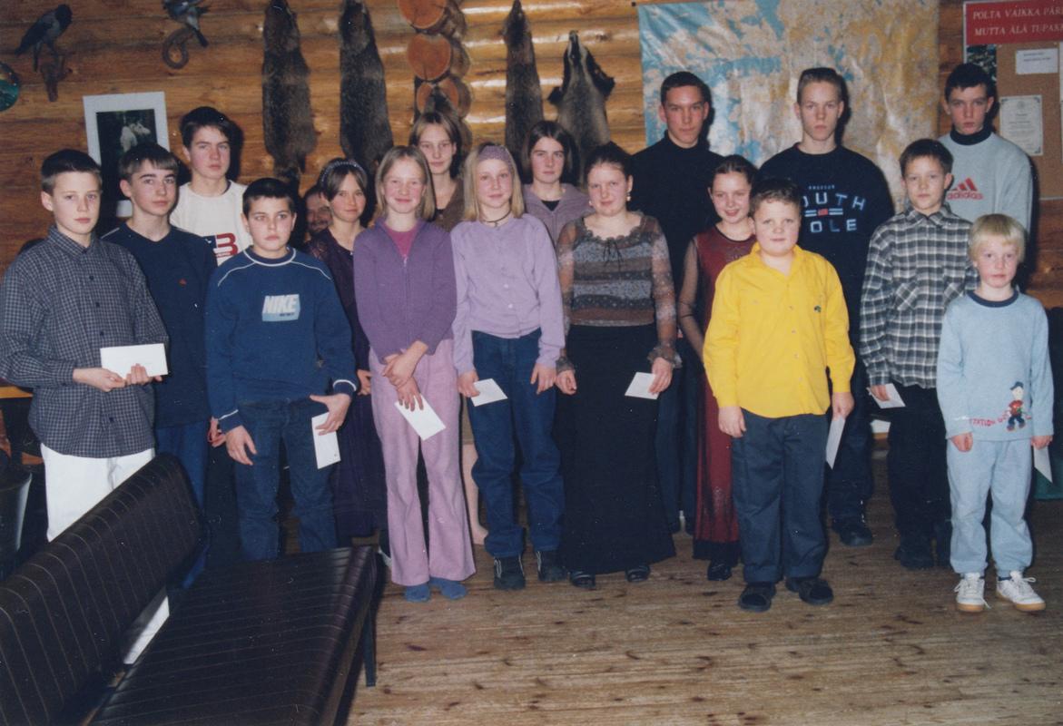 2-kuva; VaRa-joulu v. 1981: Oravapolun palkittuja nuoria. Takarivissä ovat mm. juuri pari vuotta sitten Jukolassa uudelleen kohdanneet Pasi, Carl-Mikael ja Antti.